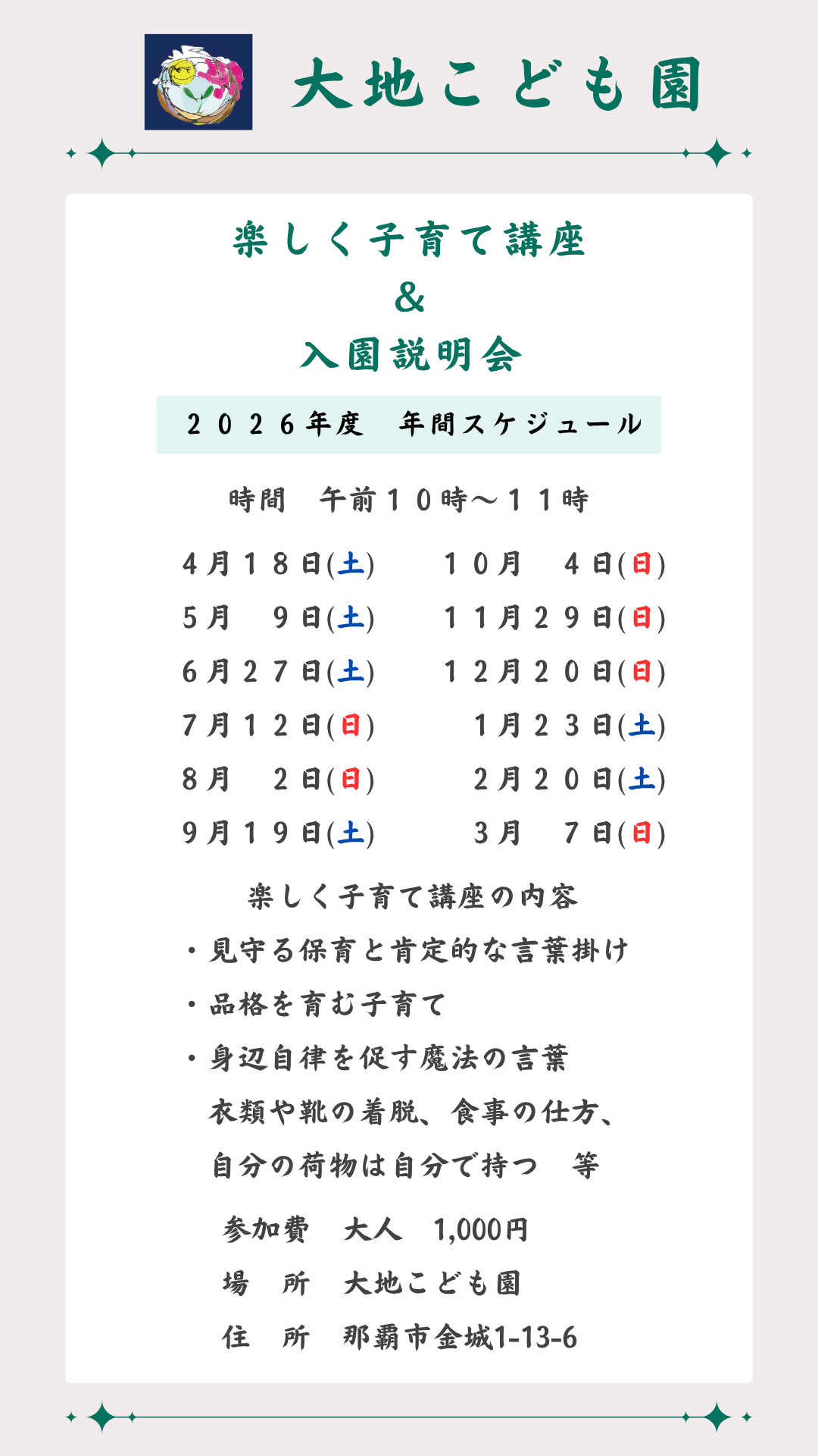 2026年度の楽しく子育て講座と入園説明会のお知らせです。